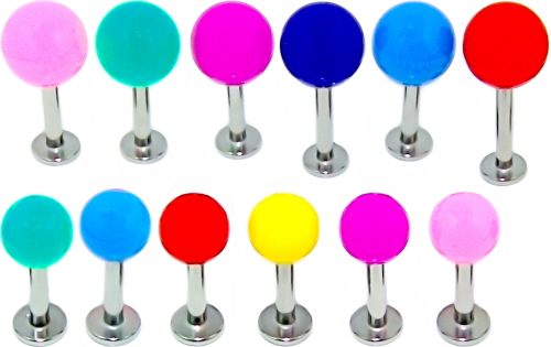 Material: Ohrpiercing, Lippenpiercing & Co Piercing Flat-Back Stecker aus Titan Hochglanzpoliert oder Chirurgenstahl und Kugel aus UV Bio-Synthetik.