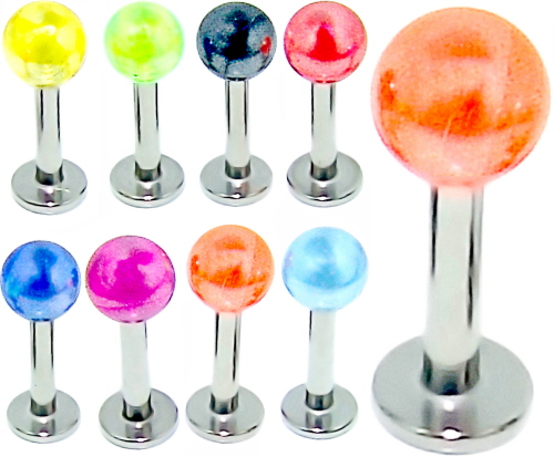 Material: Ohrpiercing, Lippenpiercing & Co Piercing Flat-Back Stecker aus Titan Hochglanzpoliert oder Chirurgenstahl und Kugel aus UV Bio-Synthetik.