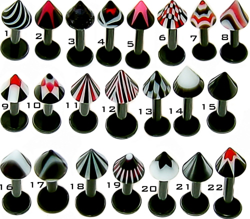 Material: Ohrpiercing, Lippenpiercing, Labretpiercing & Co Piercing Flat-Back Stecker aus G23 Titan, Chirurgenstahl Hochglanz Poliert, Bioplast oder Biosynthetik Flex und Multi Color Kegel aus UV Bio-Synthetik.