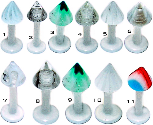 Material: Ohrpiercing, Lippenpiercing, Labretpiercing & Co Piercing Flat-Back Stecker aus G23 Titan, Chirurgenstahl Hochglanz Poliert, Bioplast oder Biosynthetik Flex und Multi Color Kegel aus UV Bio-Synthetik.