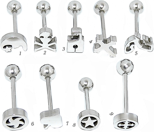 Material: Zungen-Piercing & Co Barbell (Hantel)Stecker und Aufsatz Logo aus Chirurgenstahl.