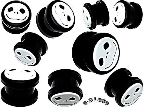 Material: Ohr Piercingschmuck 3-D Smily Logo Gewinde Flesh-Tunnel aus Schwarz Bioplastik