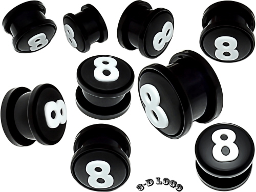 Material: Ohr Piercingschmuck 3-D Zahl 8 Logo Gewinde Flesh-Tunnel aus Schwarz Bioplastik