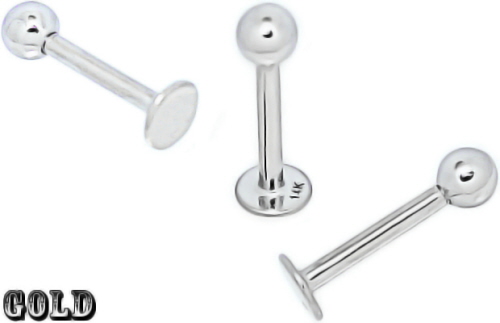 Material: Lippen-Piercing, Ohr-Piercing & Co Piercing Flat-Back Stecher und Kugel aus 585%er (14 Karat) Echt Weiß-Gold Massiv.