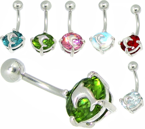 Material: Bauchnabel & Co Piercing Schmuck Banana Stecker und Kugel aus Titan Hochglanzpoliert oder Chirurgenstahl mit Großen Glitzerstein und Delfin Motiv Aufsatz auf dem Stein.