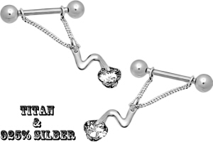 Material: Nippel-Piercing Anhänger aus 925 echt Silber (Sterling Silver) mit Swarovski Kristall und Hantel Stecker und Kugeln aus G23 Titan-Hochglanzpoliert.