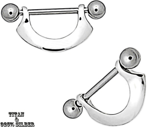 925% er echt Silber Nippelpiercing Brust Schild Schmuck Anhänger mit Hantel Stecker und Gewinde-Kugeln.