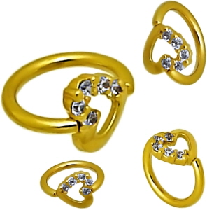 Piercingschmuck Ring und Klemmherz Farbe: Echt Gelb Gold Hochglanz Poliert.
