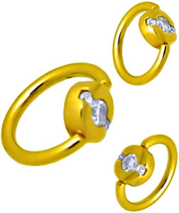 Piercingschmuck Ring und Flat-Back Klemmkugel Farbe: Echt Gelb Gold Hochglanz Poliert.