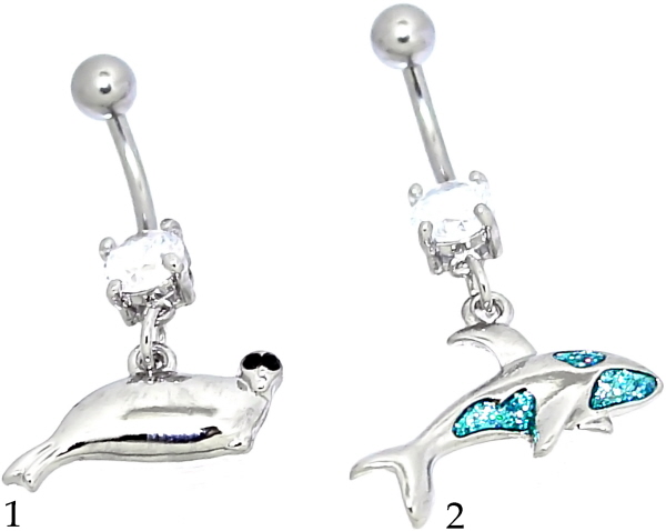 Piercingschmuck Art: Piercing Banana Stecker mit Kugel und Seehund oder Delfin Anhänger mit Multi-Schliff Glitzer-Stein (Siehe Bild).
