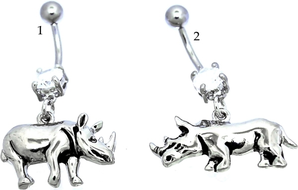 Piercingschmuck Anhänger Formen: Nashorn Anhänger mit Multi-Schliff Weiß Glitzerstein Kristall (Siehe Bilder)