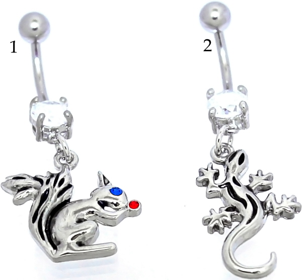Material: Bauchnabel Piercing Schmuck Banana Stecker und Kugel aus Titan Hochglanzpoliert oder Chirurgenstahl mit Eichhörnchen oder Eidechsen Anhänger und Crystal-Clear (Weiß) Stein.