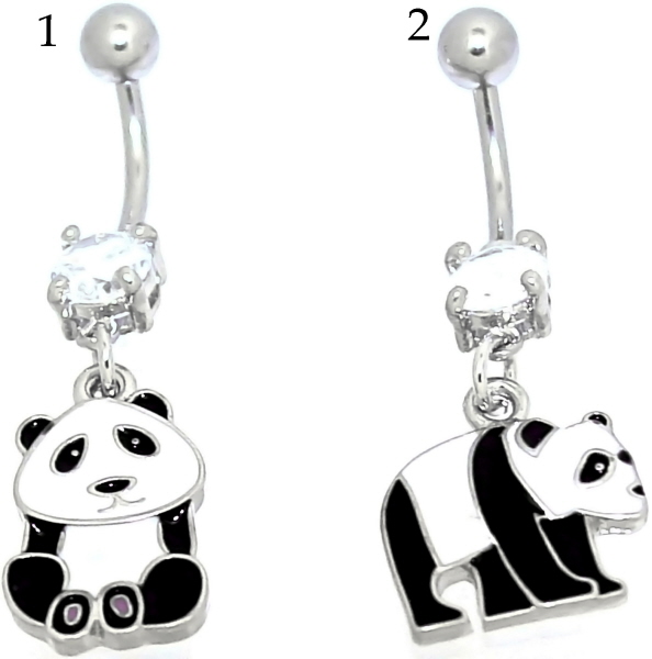 Material: Bauchnabel Piercing Schmuck Banana Stecker und Kugel aus Titan Hochglanzpoliert oder Chirurgenstahl mit Panda-Bär Anhänger und Crystal-Clear (Weiß) Stein.