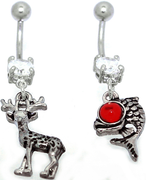 Material: Bauchnabel Piercing Schmuck Banana Stecker und Kugel aus Titan Hochglanzpoliert oder Chirurgenstahl mit Elch oder Rot Auge Fisch Anhänger und Crystal-Clear (Weiß) Stein.