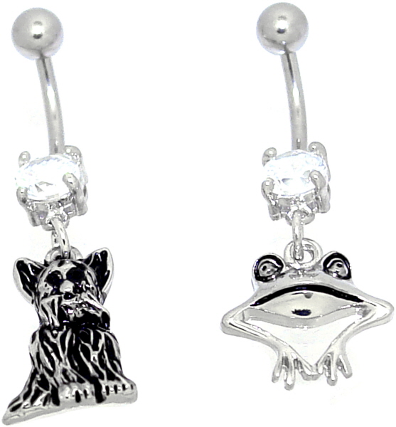 Material: Banana Stecker und Kugel aus Titan Hochglanzpoliert oder Chirurgenstahl mit Hund oder Frosch Anhänger und Crystal-Clear (Weiß) Stein.