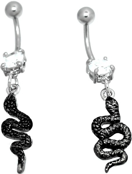 Piercingschmuck Anhänger Formen: Schwarz Schlangen Anhänger mit Multi-Schliff Weißen Glitzerstein Kristallen (Siehe Bild)