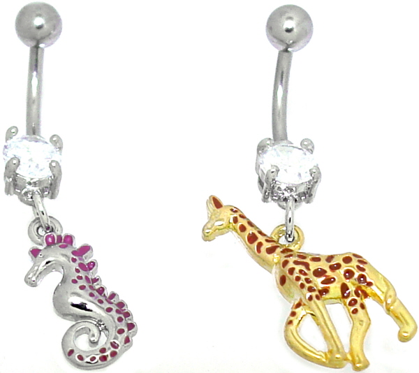 Material: Bauchnabel Piercing Schmuck Banana Stecker und Kugel aus Titan Hochglanzpoliert oder Chirurgenstahl mit Dunkelrot + Silber Seepferd oder Dunkelrot + Gold Giraffen Anhänger und Crystal-Clear (Weiß) Multischliff Stein.