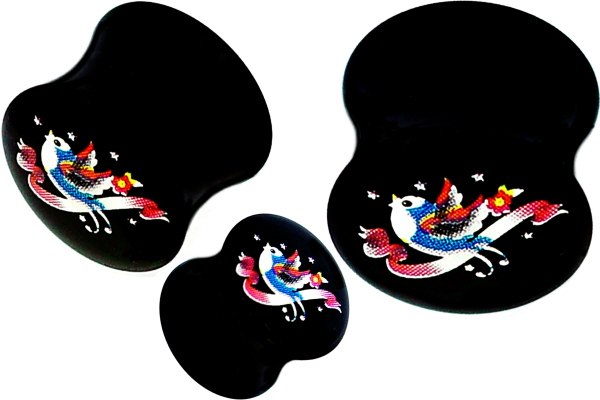 Piercingschmuck Plug Farbe: Schwarz Bio-Synthetik Plug mit Vogel Logo