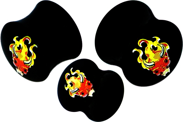 Material: Ohr Piercingschmuck Flamme Totenkopf Sattel Plugs aus Schwarz Bio-UV Synthetik