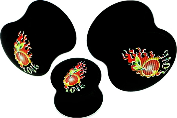 Material: Ohr Piercingschmuck Love Flamme Sattel Plugs aus Schwarz Bio-UV Synthetik