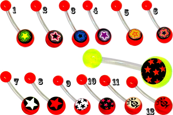Material: Piercingschmuck Bauchnabel-Piercing, Intim-Piercing, Christina-Piercing & Co Banana Stecker aus Titan Hochglanzpoliert oder Chirurgenstahl und UV farbigen Logo Kugeln aus Biosynthetik.