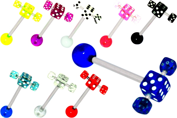 Material: Piercingschmuck Gewinde Barbell (Hantel)Stecker aus Titan Hochglanzpoliert oder Chirurgenstahl und UV farbigen Kugeln und Würfel aus Biosynthetik.
