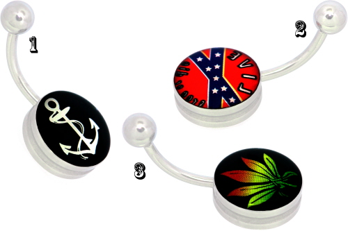 Material: Bauchnabel Piercing Schmuck Banana Stecker und Kugel aus Titan Hochglanzpoliert oder Chirurgenstahl mit Dance-Girl, Music Instrument & Co Anhänger.