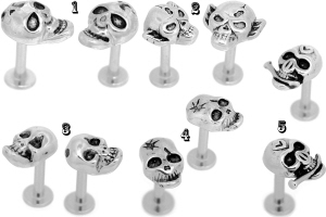Labret Ohr Lippen Piercing Stecker mit Edelstahl Totenkopf