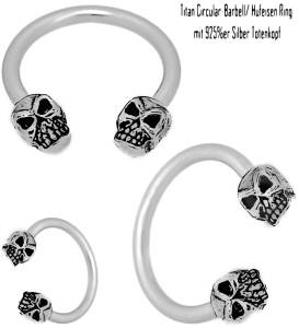 Material: Piercing Hufeisen/ Circular-Barbell Ring aus Titan Hochglanzpoliert und die Totenköpfe aus 925 echt Silber.