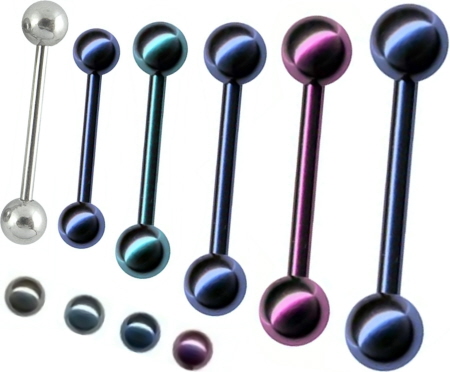 Titan Zungenpiercing Schmuck Hantel, Barbell Stecker mit Gewinde Kugeln Farbe Hellblau, Purpur, Blau, Hochglanz