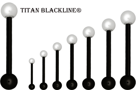 Material: Piercing Barbell/ Hantel Gewinde Stecker und Untere Kugel aus Titan Blackline® mit Synthetik Perle mit Titan Gewinde.