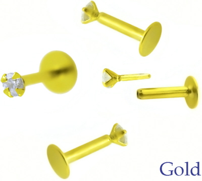 Gelb-Gold Piercingschmuck Flat-Back Stecker und Kugel geeignet für: Lippe, Labret, Intim, Schamlippen, Ohr, Tragus Piercing & Co.