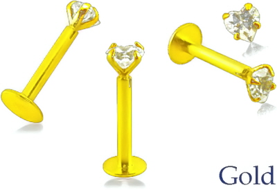 Gelb-Gold Piercingschmuck Flat-Back Stecker und Kugel geeignet für: Lippe, Labret, Intim, Schamlippen, Ohr, Tragus Piercing & Co.