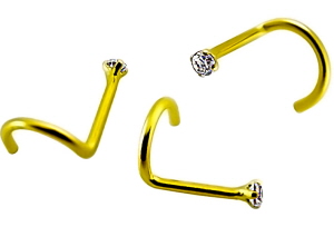 585er echt Gold Nasenpiercing gebogener Stecker mit Stein
