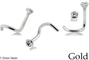 Nasenstecker Piercing Form: Gebogener Nasenstecker mit Fassung und Stein. (Siehe Bild).