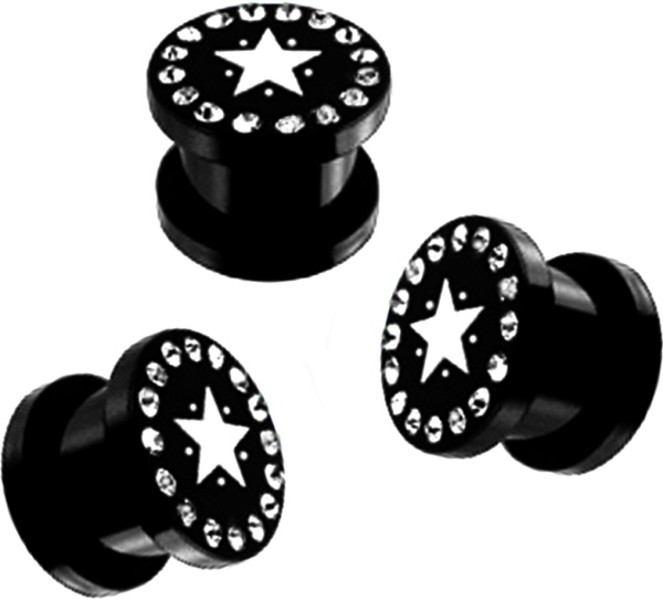 Material: Ohr Piercingschmuck Schwarz Gewinde Flesh-Tunnel aus Schwarz Bio-Synthetik mit hochwertigen Multi-Schliff Kristallen.
