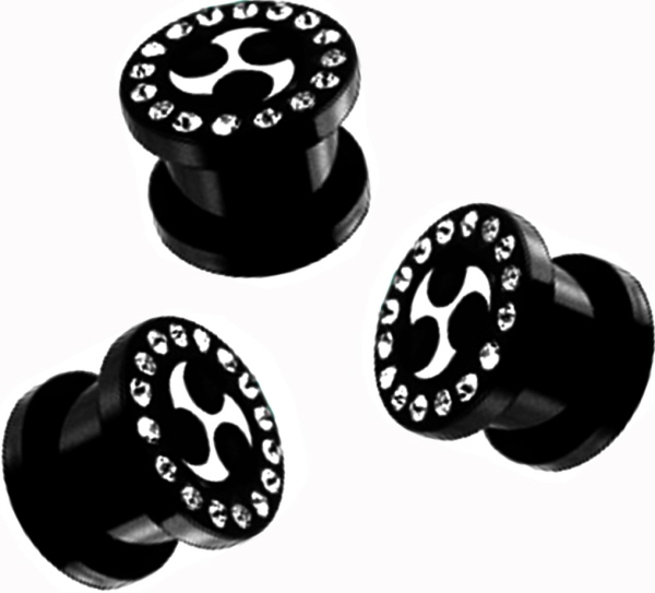 Material: Ohr Piercingschmuck Schwarz Gewinde Flesh-Tunnel aus Schwarz Bio-Synthetik mit hochwertigen Multi-Schliff Kristallen.