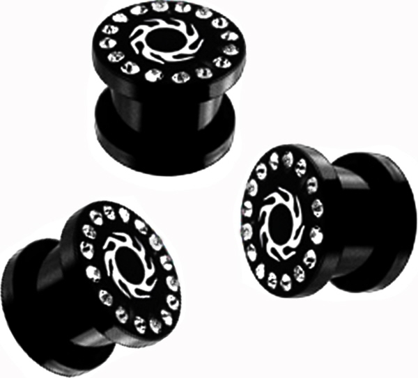 Material: Ohr Piercingschmuck Schwarz Gewinde Flesh-Tunnel aus Schwarz Bio-Synthetik mit hochwertigen Multi-Schliff Kristallen.
