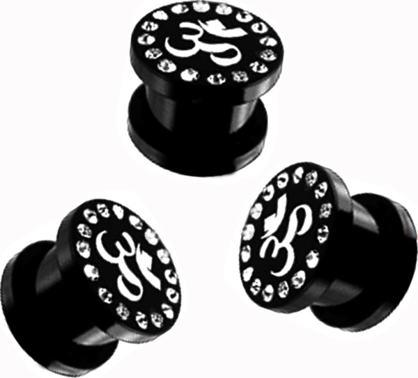 Material: Ohr Piercingschmuck Schwarz Gewinde Flesh-Tunnel aus Schwarz Bio-Synthetik mit hochwertigen Multi-Schliff Kristallen.