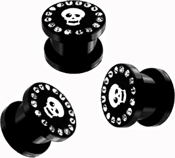 Bio Ohr Piercing Totenkopf Flesh Tunnel mit Kristallen