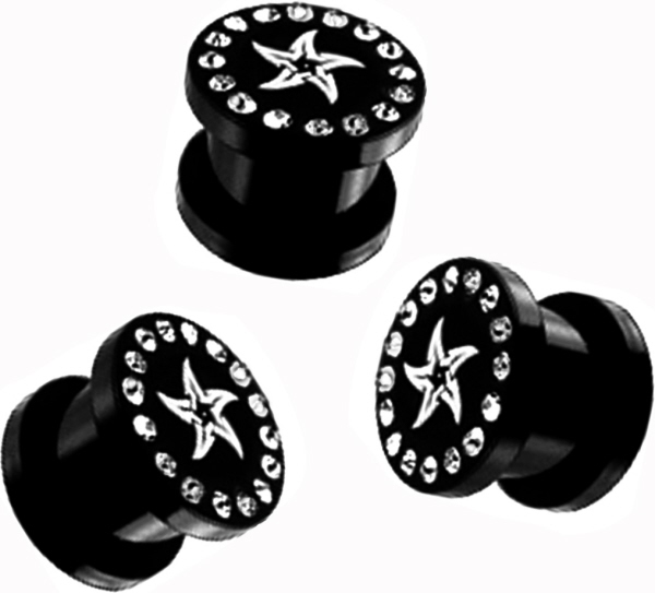 Material: Ohr Piercingschmuck Schwarz Gewinde Flesh-Tunnel aus Schwarz Bio-Synthetik mit hochwertigen Multi-Schliff Kristallen.