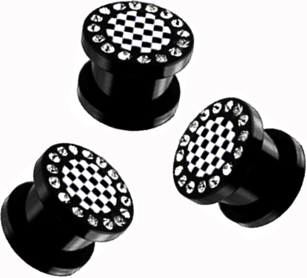Material: Ohr Piercingschmuck Schwarz Gewinde Flesh-Tunnel aus Schwarz Bio-Synthetik mit hochwertigen Multi-Schliff Kristallen.