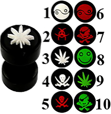 Material: Ohr Piercingschmuck Stecker aus Chirurgenstahl mit Schwarz Bio-Synthetik Halbkugeln & Logo.