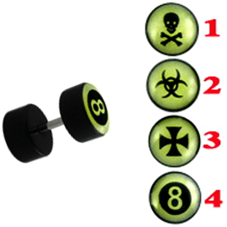 Material: Ohr Piercingschmuck Stecker aus Chirurgenstahl mit Schwarz Bio-Synthetik Halbkugeln & Logo.