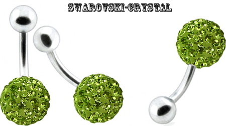 Piercing Banana mit SW oder Preciosa Multi Kristall Ball Grün.