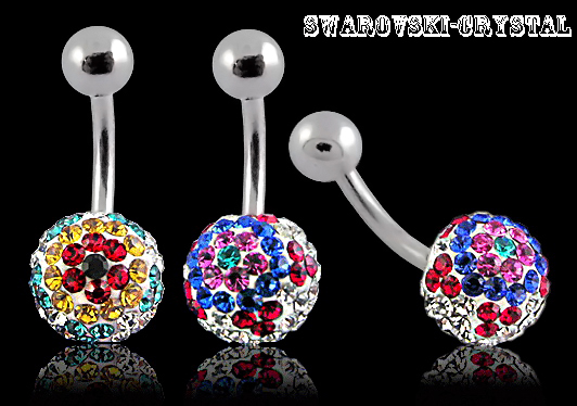 Piercing Banana mit Multi Color/ Farb SW oder Preciosa Multi Kristall Ball.