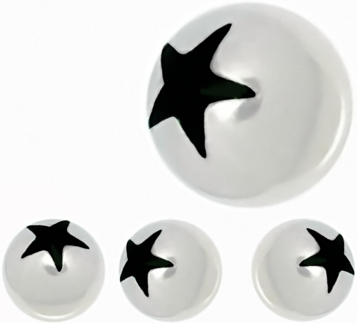 Piercingschmuck Material: Piercing Schmuck Gewinde Kugeln aus Massiv-Chirurgenstahl Hochglanzpoliert mit Schwarzen Stern Logo. Der Stern ist in der Kugel eingefräst.
