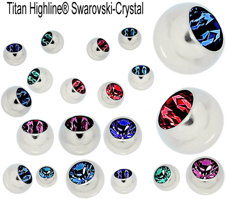Material: Piercingschmuck Gewinde Kugel aus Titan Highline® Hochglanzpoliert mit Multi-Cut/ Schliff Swarovski Kristall.