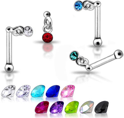 Nasenpiercing Stein Farben: Crystal-Clear/ Weiß, Hellblau/ Aquamarin, Blau, Rot Multi-Schliff