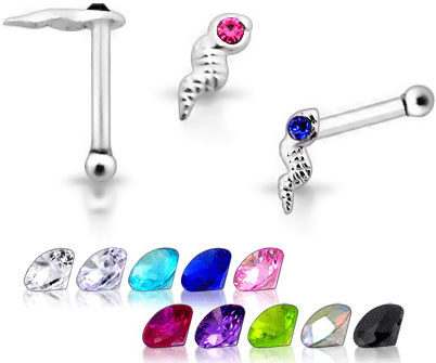 Material: Nasenstecker und Schlange Fassung von Glitzerstein aus 925%er echt Silber (Sterling Silver) mit Color.